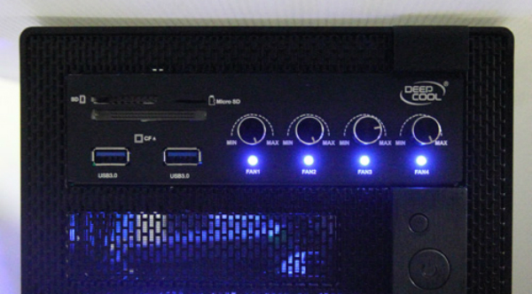 4 канала, чтобы настроить скорость вентилятора на большей комфортности. 2 USB 3.0 порта расширения. CF / SD / Micro SD читатель карточки. Установить в "отсек 5.25, легко установить.