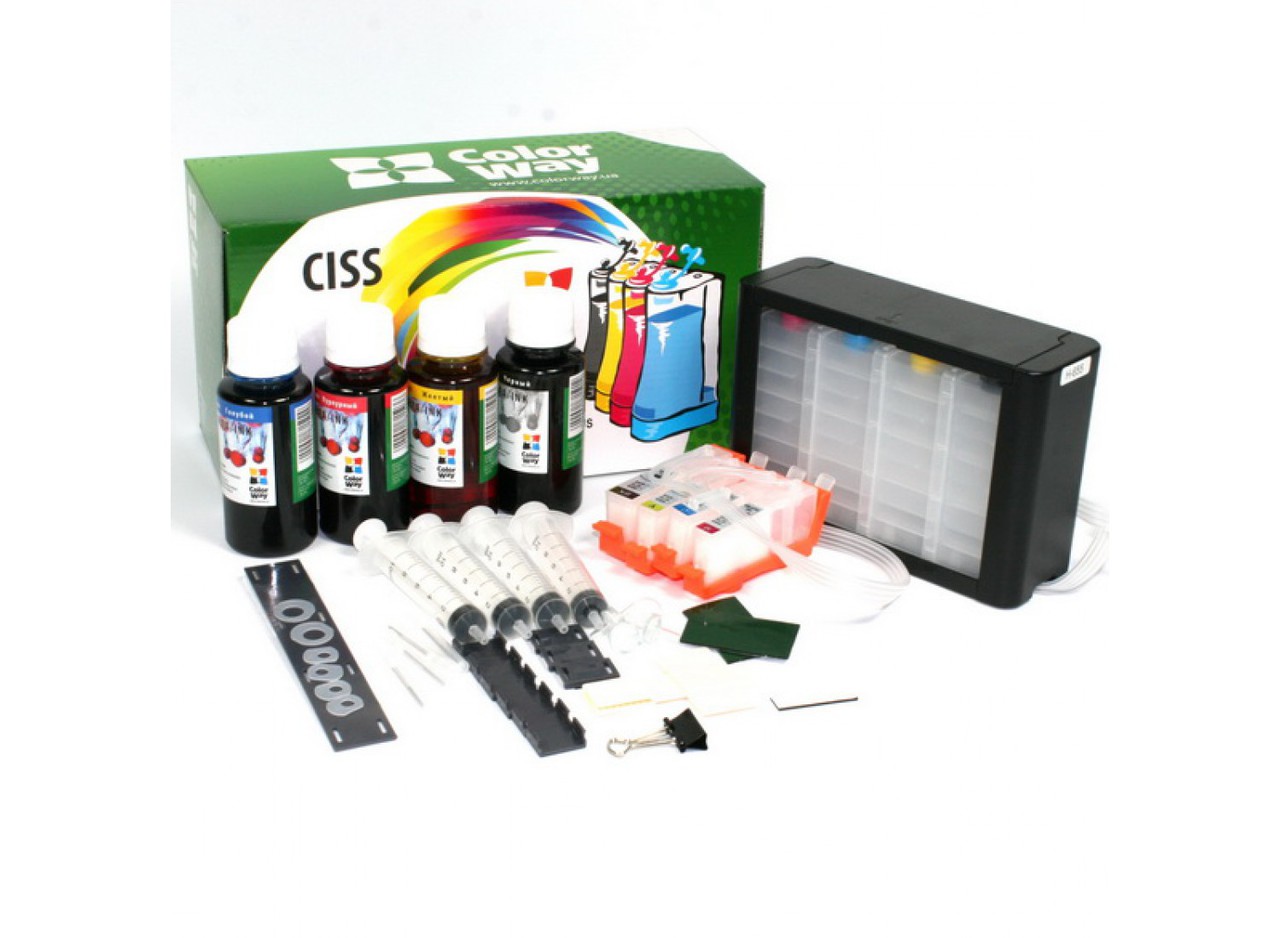 CISS ColorWay Hp. 655 DeskJet: 3525, 4615, 4625, 5525, 6525 (NEW Damper TANK, with chip) with ink 4x100ml (pigment black)