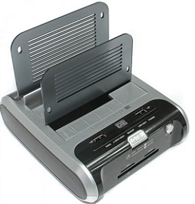 Winstars WS-UEC320D2, Combo Dual HDD Docking Station, Silver/Black, Available for 2 x 2,5"/3,5" SATA HDD up to 1.5Tb, with All in one Card Reader/ 2xUSB Hub