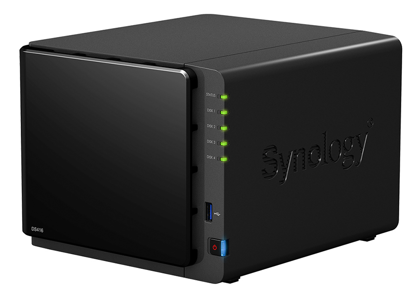 Synology DS416, 4-bay NAS Server, Internal HDD/SSD : 3.5" or 2.5" SATA(II) x4, Hardware: CPU Dual Core 1.4 GHz, Ram 1GB, USB 3.0 x3, LAN Gigabit x2; iOS/Android Applications, 24/7 Personal Cloud, HE Engine