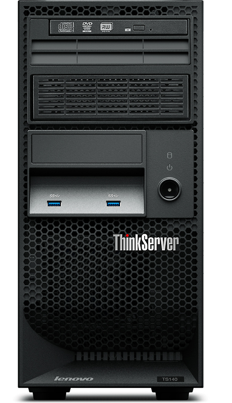 Lenovo ThinkServer TS140 w/ 4 x3.5" Bays, Xeon E3-1226v3, 1 x 4Gb ECC UDIMM, RAID100 0/1/5/10 w/ No Cache, No HDD, Slim DVD-RW, 1GbE Onboard, No TPM, No Intrusion Switch, Intel AMT 9.0, 1 x 280W PSU Fixed, Tower