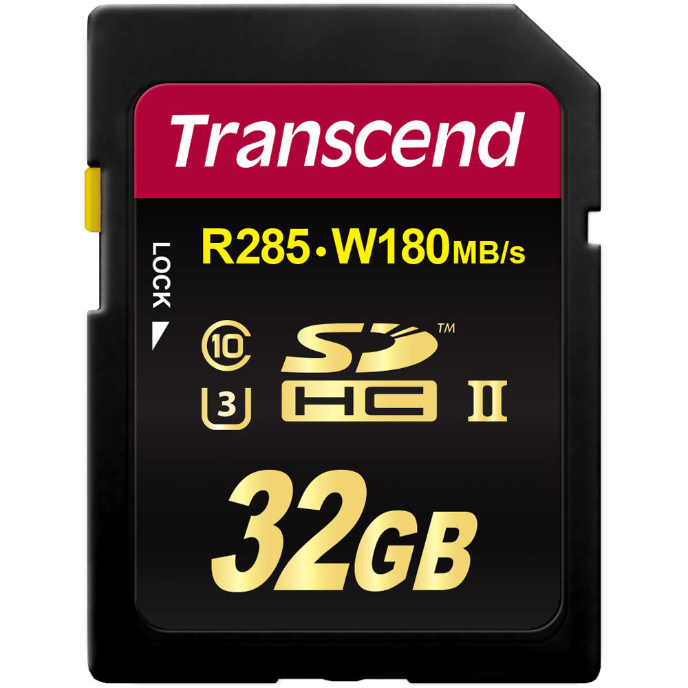 .32GB SDHC Card (Class 10) UHS-II, U3, Transcend "TS32GSD2U3" Ultra High Speed (R/W:285/180MB/s)