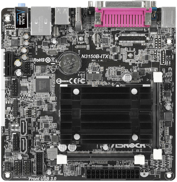 "MB SoC onboard Processors ASRock N3150B-ITX (Intel Braswell,Mini-ITX) ?Intel® Quad-Core Processor N3150(1.6-2.08GHz QUAD Core, 6W + mATX Motherboard,Supports DDR3/DDR3L 1333 memory, 2 x DDR3 slots ,VGA,DVI-D,HDMI,1x PCIe x16,2x PCIe x1,1+1 x USB 3.0, 2+