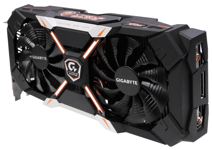VGA card PCI-E Gigabyte GV-N1060XTREME-6GD (GeForce GTX 1060 6G DDR5 )GF GTX1060,6GB DDR5, 192 bit,Engine 1847/1620MHz, Memory 8008 Mhz,,Active Cooling,DVI-D*1,DisplayPort 1.4*3,HDMI 2.0b,*1,H=40 L=278 W=114 mm power, 8 pin*1 XTREME-мощность Видеокарты Gigabyte серии Xtreme Gaming созданы, чтобы удовлетворить требования игровых энтузиастов. Видеокарты Xtreme Gaming основаны на революционной архитектуре nVidia Pascal GPU, обеспечивая невероятный игровой опыт. Производительность Реализовано с помощью новой архитектуры nVidia Pascal, Geforce GTX 10-я серия — это квантовый скачок в эффективности производительности и энергопотребления. Технологии Технология nVidia GameWorks поддерживает последние требования современных мониторов, включая VR, мониторы с ультравысоким разрешением, так же обеспечивает плавный игровой процесс, кинематографический опыт, возможность захвата изображения 360 даже в VR. Современное решение для VR Откройте для себя новое поколение VR, с низким показателем задержки, наушниками последнего поколения, благодаря технологии nVidia VRWorks. VR аудио (звуковые эффекты), реалистичная графика и физика предметов, позволяют вам прочувствовать и услышать каждый момент. Система охлаждения Windforce 2X Cистема охлаждения Gigabyte Windforce 2X реализована и состоит из 2X 100 мм вентилятора, с уникальным дизайном лопастей. Ребра радиатора имеют угол наклона, 3 композитных теплоотводящих трубки напрямую отводят тепло от графического процессора. Все это обеспечивает эффективную мощность рассеивания тепла для повышения производительности при низких температурах. Альтернативное вращение вентилятора Средний вентилятор вращается в обратном направлении, таким образом оптимизируется воздушный поток. Тепло рассеивается наиболее эффективно и достигается более высокая производительность при более низкой температуре. Уникальный дизайн лопастей вентилятора Воздушный поток эффективно отводится от радиатора с помощью вентиляторов, лопасти которых, имеют специальные насечки и форму. Благодаря этим характеристикам удается достичь высокого уровня отвода тепла, при высоких нагрузках и низкой температуре. Тесты показали эффективность выше на 23%. Дизайн радиатора Ребра радиатора под углом. Разные по высоте и находящиеся под углом ребра радиатора не только оптимизируют канал прохода воздуха и увеличивают поверхность контакта, но и значительно снижают уровень шума и увеличивают эффективность охлаждения. Композитные теплоотводящие трубки Композитные медные трубки сочетают в себе два важных аспекта теплопереноса и способности забирать тепло из зоны прямого контакта. Таким образом повышается эффективность охлаждения на 29%. Большое медное базовое основание При непосредственном контакте с GPU и VRAM, большое медное основания сочетает в себе композитные тепловые трубки для эффективной передачи тепла от внутренних ядер к радиатору, сохраняя графическую карту прохладной и стабильной при разгоне для повышения производительности. Xtreme VR Link Xtreme VR Link обеспечивает наилучшее решение, как для устройств виртуальной реальности (VR) c тремя коннекторами HDMI, так и для систем из трех 4K мониторов, которым необходимы три DP коннектора. Подключенные разъемы автоматически определяются при перезагрузке ПК. Настраиваемая RGB подсветка логотипа и индикатора работы вентилятора Доступно 16.8 млн цветовых оттенков и различные схемы работы подсветки, вы можете установить необходимый режим с помощью программного обес