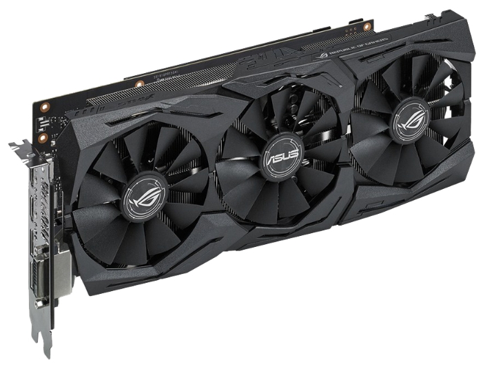 Видеокарта ASUS STRIX-GTX1060-O6G-GAMING, GeForce GTX1060 6GB GDDR5, 192-bit, GPU/Mem clock 1873/8208MHz, PCI-Express 3.0, DVI/2xHDMI/2xDisplay Port (placa video/видеокарта) Геймерская видеокарта с беспрецедентной производительностью ROG Strix — это новая серия геймерских устройств в рамках бренда Republic of Gamers. Их отличительной особенностью являются высочайшая производительность, использование инновационных технологий, безупречный уровень надежности и стильный дизайн, подчеркивающий индивидуальность каждого геймера. Устройства серии ROG Strix – это скорость и функциональность, необходимая для победы в любой игре! Идеальная геймерская платформа Графический процессор GeForce GTX 1060 является одним из самых мощных в геймерском классе среднего уровня на сегодняшний момент. Новая микроархитектура Pascal наделяет его потрясающей скоростью, а поддержка самых современных технологий максимально расширяет его функциональность. Производительность Модель GeForce GTX 1060 – это настоящий квантовый скачок в производительности и энергоэффективности современных видеокарт. Созданная на базе современнейших компонентов и технологий, таких как транзисторы FinFET и видеопамять GDDR5, она полностью поддерживает интерфейс программирования DirectX 12, используемый в новом поколении видеоигр. Микроархитектура Pascal Графический процессор GeForce GTX 1060, построенный на базе новейшей архитектуры Pascal, удовлетворяет требованиям дисплеев нового поколения и идеально подходит для VR-гарнитур, мониторов ультравысокого разрешения и мультимониторных конфигураций. Поддерживаемая им технология NVIDIA GameWorks обеспечивает плавный игровой процесс с картинкой кинематографического качества, а также позволяет снимать панорамные 360-градусные скриншоты. Для систем виртуальной реальности Откройте для себя виртуальную реальность нового поколения: технология Nvidia VRWorks гарантирует высокий уровень производительности и совместимость с лучшими VR-гарнитурами. На шаг впереди конкурентов Видеокарта ROG Strix GTX 1060 – это геймерская модель высшего класса, оснащенная множеством эксклюзивных технологий Asus. Используемая на ней система охлаждения DirectCU III может похвастать высокой эффективностью за счет вентиляторов с оптимизированной геометрией крыльчатки, а безупречная надежность устройства обеспечивается полностью автоматизированным процессом производства (технология Auto-Extreme). Система подсветки Aura RGB поможет сделать дизайн компьютера незабываемым с помощью оригинальных световых эффектов, в то время как совместимые с VR-устройствами порты HDMI подарят геймерам возможность окунуться в захватывающий мир виртуальной реальности. В комплект поставки ROG Strix GTX 1060 входят утилиты GPU Tweak II (для настройки и мониторинга параметров видеокарты) и XSplit Gamecaster (для записи и трансляции процесса игры в режиме реального времени). Высокоэффективное охлаждение: Кулер DirectCU III с технологией «прямого контакта» На данную видеокарту установлена эксклюзивная система охлаждения DirectCU III с технологией «прямого контакта»: медные тепловые трубки кулера непосредственно контактируют с поверхностью графического процессора. Оптимизированные вентиляторы. Усиленный воздушный поток и повышенное статическое давление. Три высококачественных вентилятора с оптимизированной геометрией крыльчатки, входящие в состав системы охлаждения DirectCU III, усиливают воздушный поток и увеличивают статическое да