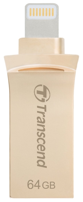 64GB USB3.1 Transcend JetDive Go 500, Gold, USB flash drive with Lightning OTG (On-The-Go), Lightning: up to 20MB/s / USB 3.1 Gen 1: up to 130MB/s, Apple MFi Certified Lightning, support JetDrive Go App, One-touch backup, Metal