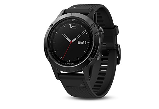 GARMIN fenix 5 Sapphire Black with black band, Multisport GPS Watch for Sport, 1.2", Water rating 10ATM, Battery life Smart mode: Up to 2 weeks, 64MB, GPS, Compass, Bluetooth, Smart, ANT+, Wifi, Smart notifications and Activity Tracking Features, 85g