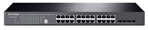 24-Port Gigabit JetStream Stackable Smart Switch TP-LINK "T1700G-28TQ", 4 10GE SFP+ SlotsTrue physical stacking supports up to 6 units and 40Gbps bi-directional bandwidth for high scalability and efficient redundancy10G SFP+ ports for stacking and/or upli
