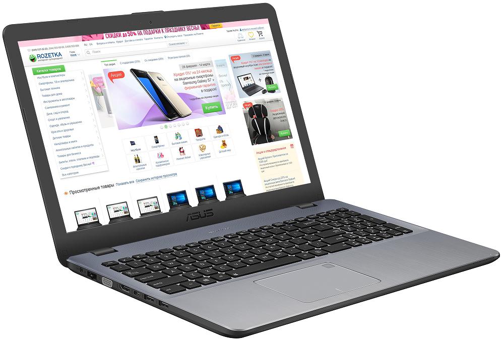 NB ASUS 15.6" X542UQ Grey (Core i7-7500U 8Gb 256Gb)15.6" Full HD (1920x1080) Non-glare, Intel Core i7-7500U (2x Core, 2.7GHz - 3.5GHz, 4Mb), 8Gb (1x 8Gb) PC4-17000, 256Gb M.2, GeForce 940MX 2Gb, HDMI, DVD-RW, Gbit Ethernet, 802.11ac, Bluetooth, 1x USB 3.1