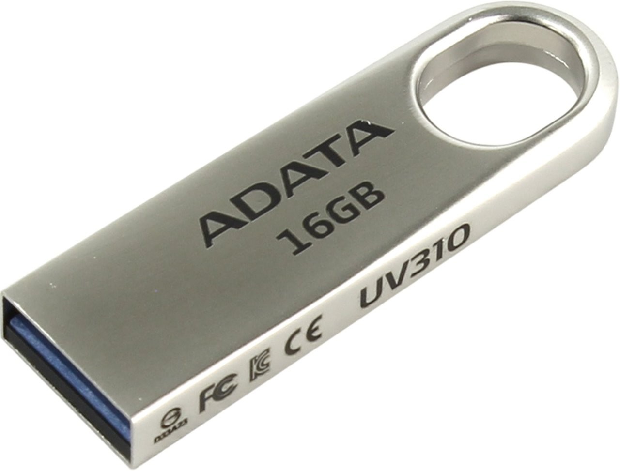 16GBUSB3.0FlashDriveADATA"UV310",Silver,MetalCase,SlimCapless,f/Keychain(R/W:40/20MB/s)