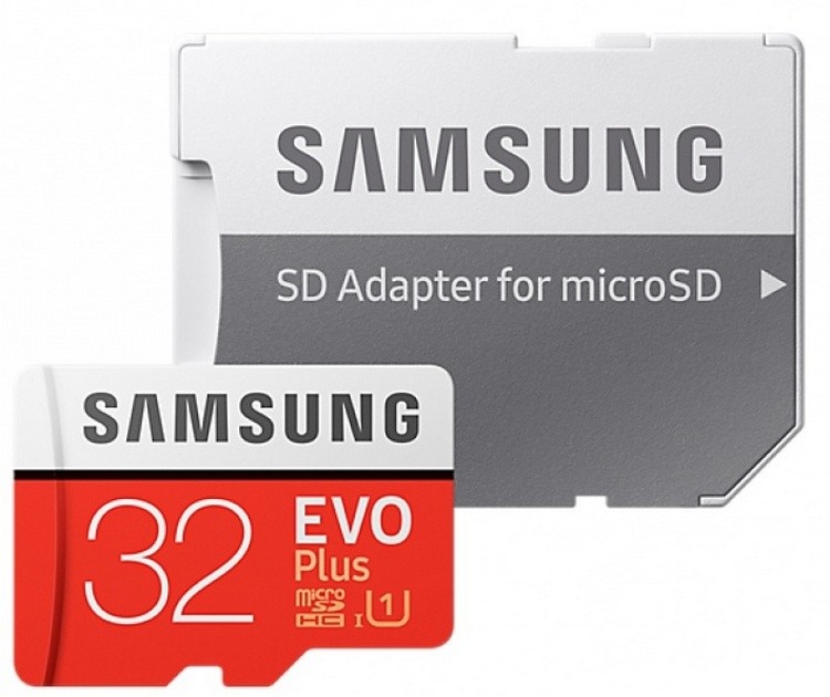 32GB Samsung EVO Plus MB-MC32GA/RU microSDHC (Class 10 UHS-I) with Adapter, Read:up to 95MB/s, Write:up to 20MB/s
