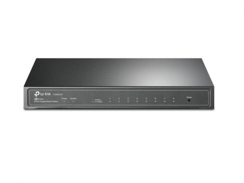 "8-port 10/100/1000Mbps Switch TP-LINK ""T1500G-8T"" 802.3af compliant PoE Port8 allows receiving power from a PoE source Gigabit Ethernet connections on all ports provide full speed of data transferring Advanced security features include IP-MAC-Port