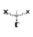 Table/desk stand Sopar FLEXO Desk 23-1010Q for 4 monitor 12""-23 "", 75x75, 100x100, 8kg per bracket. - https://www.sopar.it/prodotto/flexo-desk-2-monitor-13-23/ Профессиональная настольная подставка для размещения двух настольных мониторов с зажимным соединением. Он управляет мониторами с диагональю от 13 до 23 дюймов, с максимальной применимой массой 8 кг. Применимая Vesa составляет 75 ? 75 и 100 ? 100. Кронштейн прочный и элегантный, достаточно, чтобы его можно было вставлять в любую среду, бизнес или потребитель. Крюки, которые движутся вдоль рукавов, позволяют закреплять кабели для точной и чистой установки. Позволяет вращать позиционирование монитора в портретном или альбомном положении. Он выполнен из алюминия и поставляется в серебре, с черными деталями на концах.