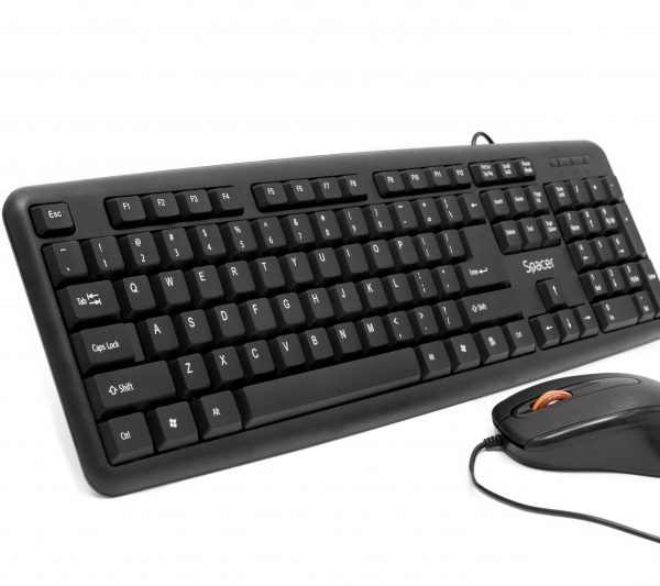 Wired kit Spacer USB QWERTY keyboard + optical mouse combo SPDS-S6201 производительSpacer Тип проводная цвет черный Количество клавиш 104 Интерфейс клавиатуры USB подключение для мыши проводная технология оптический Цветная мышь черный количество кнопок 3 колесо прокрутки 1 разрешение 1000 - 2000 точек на дюйм Интерфейс мыши USB