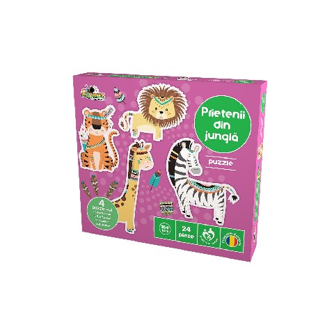 Puzzle Premium-Prietenii din jungla Noriel Пазлы Premium "Друзья из джунглей" Соберите свой багаж в рюкзак, потому что вы отправляетесь в путешествие! В вашем приключении через джунгли вас будут сопровождать лев, тигр, зебра и жираф. В джунглях вам дан зеленый цвет для игр и веселья! Cодержание набора: - 4 пазла: 3, 5, 5, 7 деталей - 4 фигуры Рекомендуемый возраст: 18 месяцев