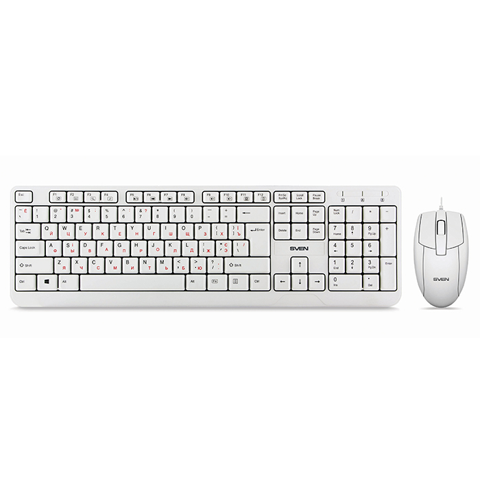 "Keyboard & Mouse Sven KB-S330C, Fullsize layout, Splash proof, Fn key, White, USB , Optical, 800 dpi, 3 buttons, Ambidextrous - http://www.sven.fi/ru/catalog/keyboard/kb-s330c.htm"