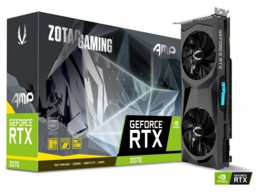 ВидеокартаZOTACGeForceRTX2070AMP!Edition8GBDDR6,256bit,1740/14000Mhz,DualFanIceStorm2.0,HDCP,HDMI,3xDisplayPort,USBType-C,SPECTRALightingSystem,PremiumPack
