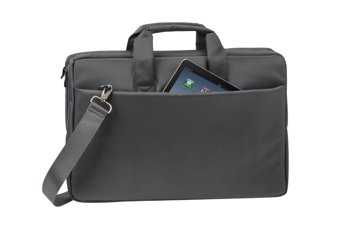 17.3" NB bag - Rivacase 8251 Grey https://rivacase.com/en/component/virtuemart/8251-grey-Laptop-bag-173-detail?Itemid=0 Сумка для ноутбука до 17.3''. • Стильная, элегантная сумка для ноутбуков до 17.3”. • Два дополнительных внешних отделения помогут удобно разместить все необходимые аксессуары, планшетный PC. • Переднее отделение с карманом для мобильного телефона, авторучек и аксессуаров для ноутбука. • Двойная молния для удобного доступа к устройству. • Ручки для транспортировки. • Регулируемый съемный плечевой ремень с мягкой накладкой.