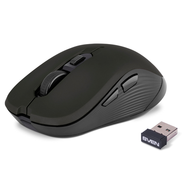 SVEN RX-560SW Wireless, Optical Mouse, 2.4GHz, Nano Receiver, 800/1200/1600dpi, 5+1(scroll wheel) Silent buttons, Switching DPI modes, Rubber scroll wheel, Back