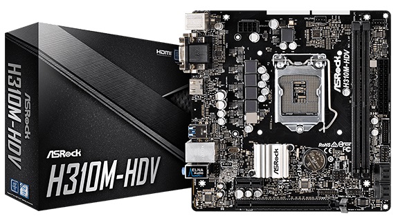 Материнская плата ASRock H310M-HDV, Socket 1151, Intel® H310 (9th/8th Gen CPU), Dual 2xDDR4-2666, CPU Intel graphics, VGA, DVI, HDMI, 1xPCIe X16, 4xSATA3 материнская плата форм-фактора microATX сокет LGA1151 v2 чипсет Intel H310 2 слота DDR4 DIMM, 2133-2666 МГц. разъемы SATA: 6 Гбит/с - 4