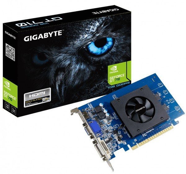 Видеокарта Gigabyte GT710 1GB GDDR5 Low Profile // GeForce® GT 710, 1GB DDR5, 64 bit, Engine 954MHz, Memory 5010MHz, Active Cooling, DVI-I *1, HDMI *1, Low profile bracket included Видеокарта (модель) NVIDIA GeForce GT 710 Процессор (тактовая частота GPU / Boost), МГц 954 Видеокарта (объем памяти) 1 ГБ Видеокарта (тип памяти) GDDR 5 Разрядность шины памяти, бит 64 Частота работы шины памяти, МГц 5010 Дополнительное питание Без дополнительного питания Версия DirectX 12