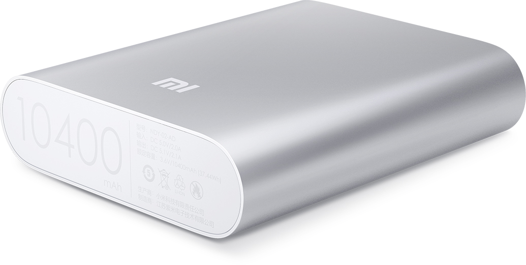 "Xiaomi Power Bank, 5000 mAh Power capacity: 10400mAh. Output: DC5V - 2.1A+1A. Input: DC5V - 1A"