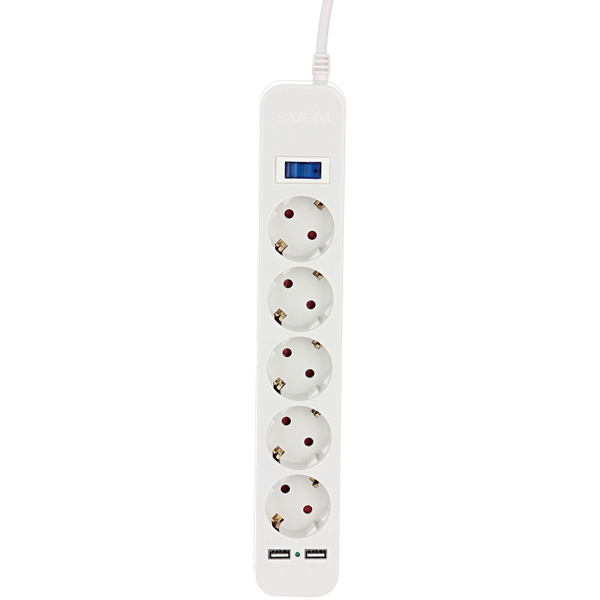"Surge Protector 5 Sockets, 3.0m, Sven ""SF-05LU"", 2 USB ports charging (2.4A), White - http://www.sven.fi/ru/catalog/filter/sf-05lu.htm "