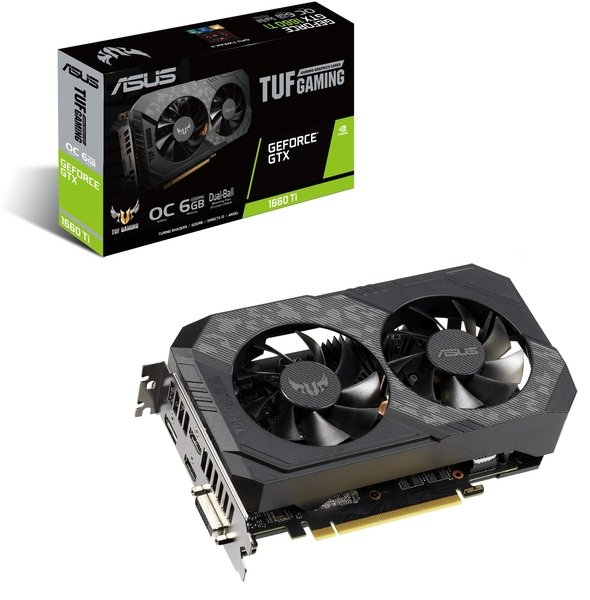 Видеокарта ASUS GTX1660Ti 6GB GDDR6 TUF Gaming OC // GeForce® GTX 1660 Ti, 6GB GDDR5, 192 bit, Engine 1530/1845MHz (OC Mode), Memory 12002MHz, Active Cooling (2x fans), DisplayPort 1.4 *1, HDMI 2.0b *2, DVI-D *1, Power 8 Pin*1