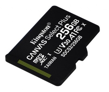 256GB microSD Class10 A1 UHS-I + SD adapter Kingston Canvas Select Plus, 600x, Up to: 100MB/s