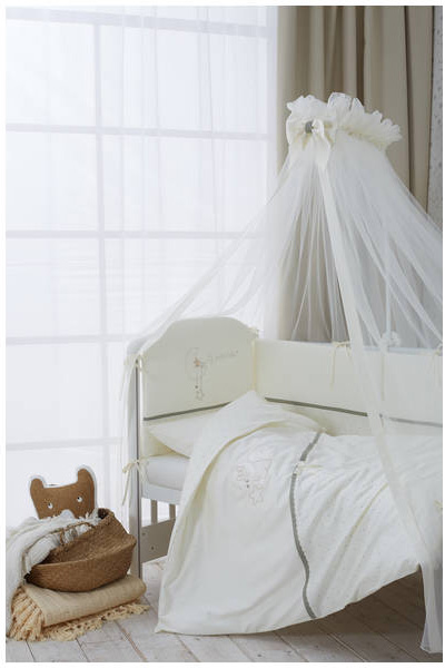 Комплект постельного белья для детей "Le petit bebe" т.м.Perina, арт. ПБ6-01.1 (цвет Молочно-оливковый) (страна пр-ва: РБ) Модель «Le Petit Bebe» - это эксклюзивный комплект, обладающий мягким свечением спокойных оттенков. Постельное белье Perina, благодаря высокому качеству и особому способу окрашивания ткани, сохраняет яркость ткани после многократных стирок. Ткань – сатин класс люкс. Одеяло и подушка - наполнитель гипоаллергенное воздушное эвкалиптовое волокно, которое сохраняет объем и форму. Выполнен для стандартных детских кроваток размером 120х60. Защитный бампер выполнен из 6 раздельных элементов, что не доставляет хлопот в уходе, а также делает более широкий вариант расположение частей бампера в кроватке.Простыня на резинке практична в использовании. Характеристики: изготовлена из 100% хлопка (высококачественный сатин класса люкс) бампер из шести частей дает возможность разнообразных вариантов использования. Бампер со съемными чехлами, что позволяет стирать только ткань бампера, не затрагивая внутренней наполнитель простыня на резинке позволяет с легкостью заправлять и снимать, а также не будет съеживаться во время сна в пододеяльнике вместо традиционной прорези используется застежка-молния одеяло и подушка с наполнителем из эвкалиптового и полиэстерного волокна. Природный наполнитель эвкалипт обеспечивает фантастический комфорт и подходит всем без исключения, включая новорожденных подушки и одеяла из эвкалипта надолго сохраняют объем и форму, причем это свойство не теряется даже после многочисленных стирок наполнителем в бортиках является экологически чистый, гипоаллергенный и легкий наполнитель Hollcon. Он надежно сохраняет тепло, исключая парниковый эффект. Тонкие пустотелые волокна движутся независимо друг от друга, из-за чего наполнитель не сбивается, не слёживается, сохраняет свою форму после намокания и восстанавливает ее после многократных стирок Комплектация: 6 предметов Простынь на резинке размером 105х170 см Подушка 60х40 см Наволочка 60х40 см Пододеяльник 102х143 см Одеяло 100х140 см Бортики со съемными чехлами из шести частей размером 38х360 см