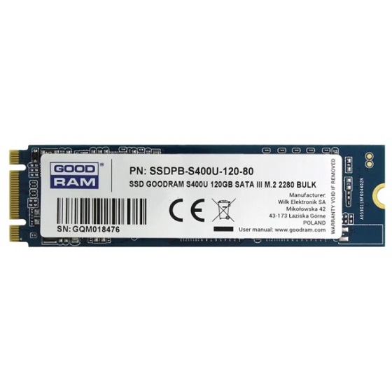 M.2 SATA SSD 480GB GOODRAM S400U, Interface: SATA 6Gb/s, M.2 Type 2280 form factor, Sequential Reads: 550 MB/s, Sequential Writes: 530 MB/s, Controller Phison S11, NAND TLC, Retail
