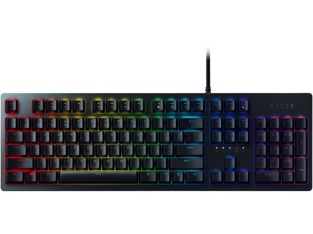 Keyboard RAZER Huntsman - Russian Layout / Opto-Mechanical Gaming Keyboard, 45 G actuation force, 100 million keystroke lifespan, Chroma backlighting with 16.8 million customizable color options, Hybrid onboard storage – up to 5 profiles, Fully programmab проводная клавиатура интерфейс USB для настольного компьютера, игровая классическая конструкция, оптическая клавиш: 104 размеры (ШxВxГ): 444.50x36.50x140 мм вес: 860 г