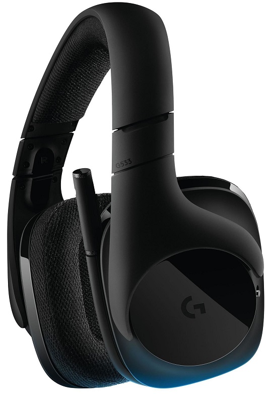 Logitech Gaming Headset G533 Wireless 7.1 Surround, Pro-G 40mm 32Ohms 20 Hz-20 KHz, Battery Life:15 hours, 350g, Wireless Range: 15 m компьютерная гарнитура, игровая беспроводное подключение с полноразмерными наушниками крепление при помощи оголовья встроенный регулятор громкости микрофон с шумоподавлением режим объемного звучания (surround) подключение: USB частота воспроизведения 20-20000 Гц