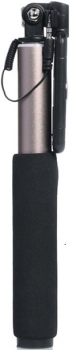 "Remax Selfie stick P5, wired Length Range: 20-107 cm, 7 section stainless steel rods. Product Net Weight: 165 g. Maximum Load: 500 g. Battery Capacity: 45 mAh. Charging Voltage: 5V. Charging Time: 1 Hour. Stand-By Time: >100 Hours. Gold"