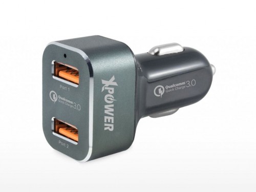 XPower car adapter, 2.1A, 2USB Input : 100-240V ~50/60Hz Max0.6A Output: 5.0V-2.0A Standard USB interface - Plug and use Black