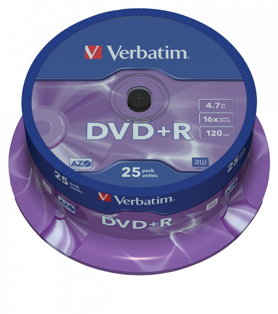 Verbatim DataLifePlus DVD+R AZO 4.7GB 16X MATT SILVER SURFAC - Spindle 25pcs.Verbatim DataLifePlus DVD+R AZO 4.7GB 16X MATT SILVER SURFAC - Spindle 25pcs.
