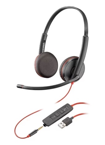 Plantronics Blackwire C3225 (209747-101), USB -A / Jack 3.5mm, Microphone noise-canceling, SoundGuard, DSP, Receive output from 20 Hz–20 kHz, Microphone 100 Hz–10 kHz, Call answer/ignore/end/hold, redial, mute, volume +/-, OEM