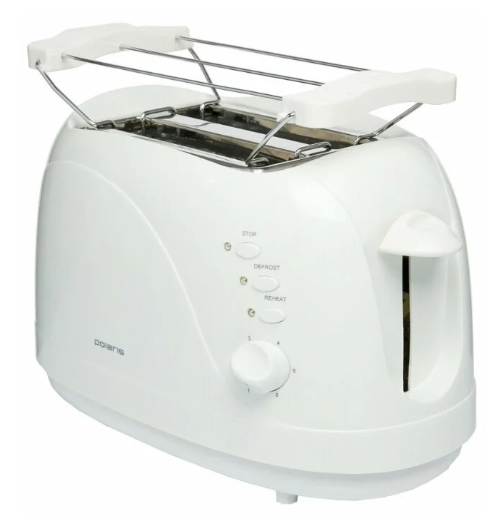Toaster Polaris PET0702L, 750W, 2 slices of toast, variable browning control, cancel button, white на 2 тоста мощность 750 Вт механическое управление функция размораживания решетка для подогрева булочек, поддон для крошек