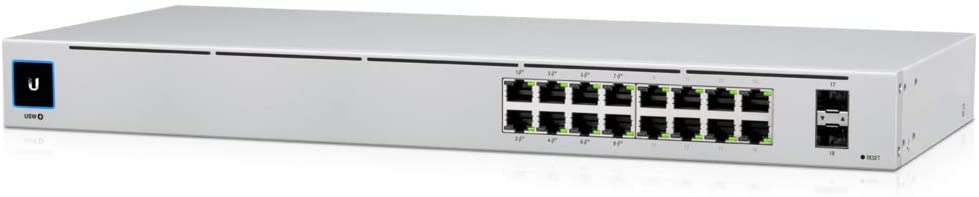 Ubiquiti UnFi Switch 16 (USW-16-POE), 16-Port 802.3at PoE Gigabit Switch with SFP, 2-ports SFP, POE+ IEEE 802.3at/af, PoE Output 42W, 1.3" Touchscreen display, Non-Blocking Throughput: 18 Gbps, Switching Capacity: 36 Gbps, Rackmountable