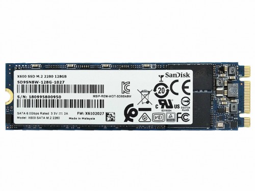 M.2 SATA SSD 128GB SanDisk X600, Interface: SATA III 6Gb/s, M.2 Type 2280 form factor, Sequential Reads: 530 MB/s, Sequential Writes: 490 MB/s, Max Random 4k Read 82,000 / Write 74,000 IOPS, 3D NAND TLC, bulk