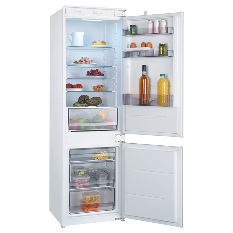 Холодильник FRANKE FCB 320 NR MS A+ (118.0524.539) встраиваемый Тип: Холодильник с морозильником Расположение морозильной камеры: Снизу Класс энергопотребления: A+ Управление: Механическое Общий объем: 260 л. Объем холодильной камеры: 189 л Объем морозильной камеры: 71 л Размораживание холодильной камеры: автоматическое Размораживание морозильной камеры: Ручное Мощность замораживания: 3.5 кг/сутки Уровень шума: 38 Дб? Материал полок: Cтекло Высота: 177.2 см Ширина: 54 см Глубина: 54 см