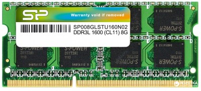8GB DDR3L-1600 SODIMM Silicon Power, PC12800, CL11, 512Mx8 16Chips, 1.35V 1 модуль памяти DDR3L объем модуля 8 ГБ форм-фактор SODIMM, 204-контактный частота 1600 МГц CAS Latency (CL): 11