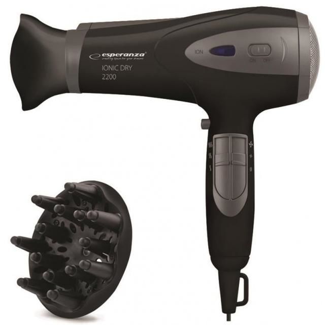 Hair Dryer Esperanza VIVIEN EBH005K; 2200W; 2 speeds; 3 temperature levels; ionic function, styling nozzle & diffuser
