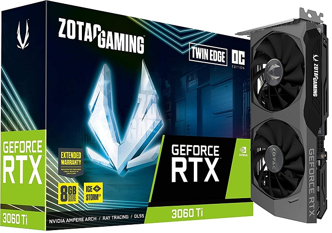 ZOTAC GeForce RTX 3060 Ti Twin Edge 8GB GDDR6, 256bit, 1665/14000Mhz, Ampere, PCIeX16 4.0, Dual Fan / IceStorm 2.0, 1xHDMI, 3xDisplayPort, Active Fan Control, Direct GPU Contact, FireStorm, Metal Wraparound Backplate, Medium Pack