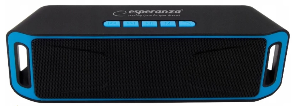 Esperanza FOLK EP126KB, Bluetooth Portable Speaker, power: 6W (2 x 3W), Black/Blue, Built-in FM Radio, Bluetooth profiles: A2DP, AVRCP, HFP, HSP, Bluetooth version: 3.0, Built in USB port and TFT (microSD) card slot for MP3/MP4 playing, Operating distance