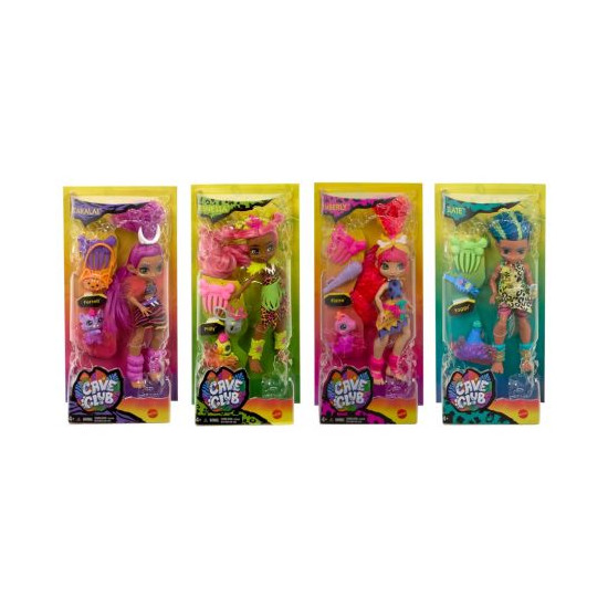 Papusile Cave Club in asort. GNL82 Как поживают они, пещерные модники, жившие во времена динозавров? У кукол настоящие волосы сшиты разноцветными нитками. Прически этих кукол отнюдь не из каменного века. Кажется, обитатели пещеры умеют пользоваться современными салонами красоты и любят наносить на лицо яркий макияж и татуировки.