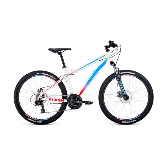 Велосипед FORWARD FLASH 26 2.2 disc (26" 21 ск. рост 15") 2020-2021, белый/голубой