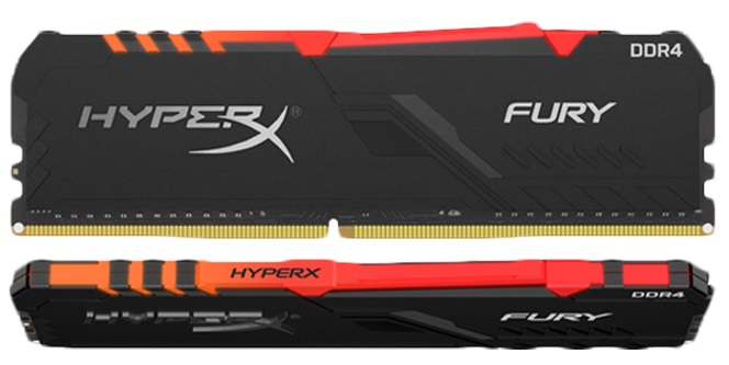 64GB (Kit of 2*32GB) DDR4-3000 Kingston HyperX® FURY DDR4 RGB, PC24000, CL16, 1.35V, Auto-overclocking, Asymmetric BLACK heat spreader, Dynamic RGB effects featuring HyperX Infrared Sync technology, Intel XMP Ready (Extreme Memory Profiles)