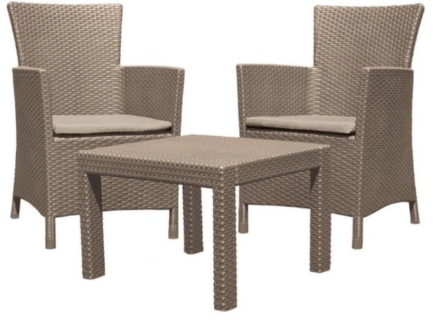 Набор садовой мебели Alibert Rosario Balcony Set Cappuccino Серия Rosario Материал полипропилен Цвет капучино Комплектация столик и 2 кресла Размеры стула 62x60x89 см Размеры стола 59x59x43 см Страна производитель Польша Производитель Alibert
