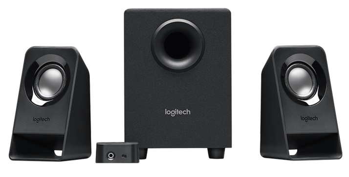 Speakers 2.1 Logitech Z213, 7W (4W + 2x1.5W) Power and volume controls on wired control pod, bass control on back of subwoofer, Black